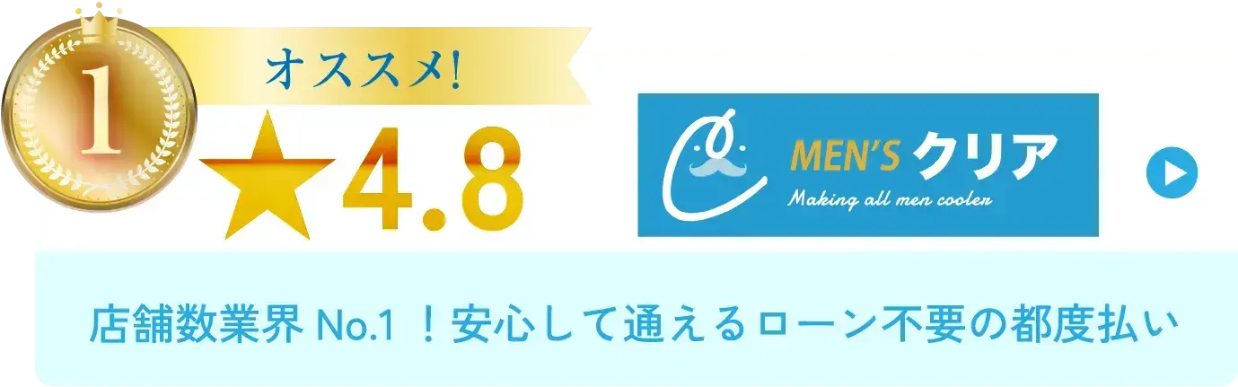 一般的な脱毛では毛周期に合わせて2ヶ月おきに通うことが推奨されますが、美容脱毛であるメンズクリアなら、毛周期に関係なく通えるから最短6ヶ月で脱毛が完了!「急いで脱毛をしたい」「早く効果を実感したい」という方には特にオススメです!