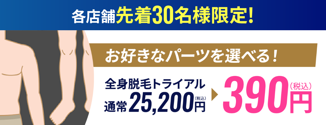 若い男性からの口コミ◎!脱毛デビューがしやすい圧倒的な低価格。