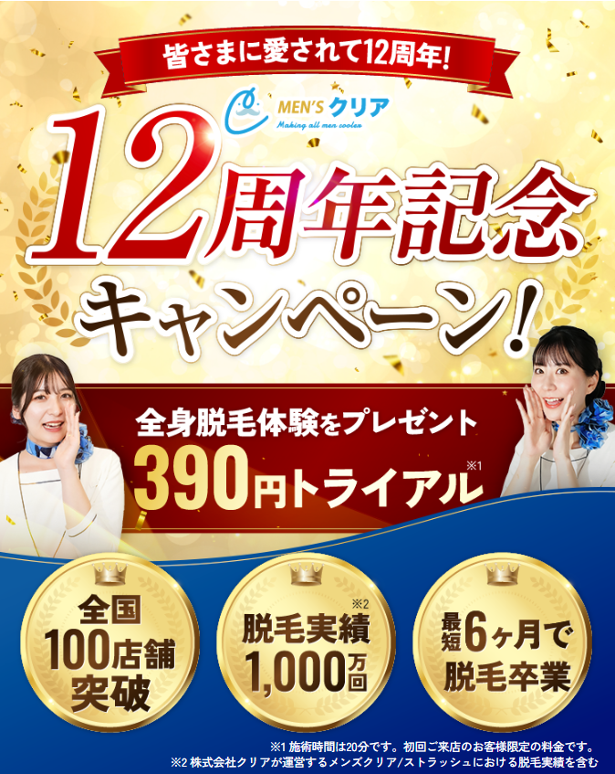 最初は脱毛がどんなものかわからなくて不安な方でも、メンズクリアなら安心してお試しをすることが可能!